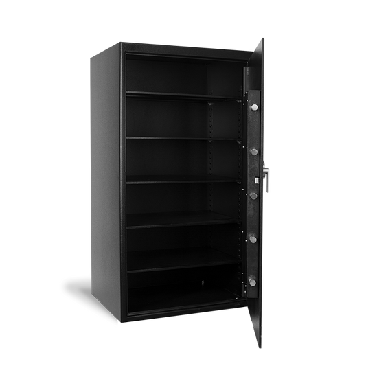 Our largest inventory control safe is designed for companies needing secure storage for large quantities of valuable items. Featuring two independently controlled chambers with 5 reinforced steel shelves each, this model incorporates our proprietary anti-pry system, self-locking boltworks, and a relocker mechanism, ensuring unparalleled security and access control.